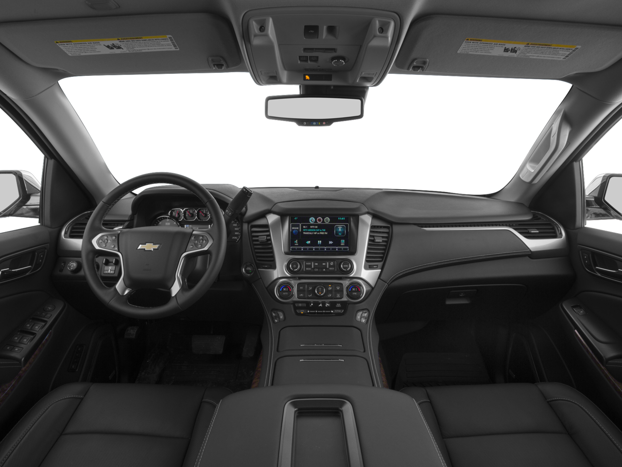 This Tahoe Premier is nicely equipped with Enhanced Driver Alert Package (Y86) (Forward Collision Alert Sensor Indicator, IntelliBeam Headlamps, Lane Keep Assist, and Low Speed Forward Automatic Braking), License Plate Front Mounting Package, Magnetic Ride Control Suspension Package, Max Trailering Package (Integrated Trailer Brake Controller), Preferred Equipment Group 1LZ (1st & 2nd Row Color-Keyed Carpeted Floor Mats, 3rd Row 60/40 Power Fold Split-Bench, 4-Wheel Antilock Disc Brakes w/Brake Assist, Auto-Dimming Inside Rear-View Mirror, Black Assist Steps w/Chrome Accent Strip, Bose Centerpoint Premium 10-Speaker Surround Sound, Color-Keyed Carpeting Floor Covering, Driver Inboard & Front Passenger Airbags, Electronic Cruise Control w/Set & Resume Speed, Enhanced Driver Information Center, Floor Console, Fog Lamps, Front & Rear Parking Assist, Hands Free Power Liftgate, Heated 2nd Row Seats, Heated Leather Wrapped Steering Wheel, Memory Settings, NavTraffic, OnStar Basic Plan For 5 Years, Passive Entry System, Power Release 2nd Row Bucket Seats, Power Tilt & Telescopic Steering Column, Power-Adjustable Accelerator & Brake Pedals, Power-Folding Heated Outside Mirrors, Push Button Keyless Start, Rear Cross-Traffic Alert, Remote Keyless Entry, Remote Vehicle Start, Roof-Mounted Luggage Rack Side Rails, Side Blind Zone Alert w/Lane Change Alert, SiriusXM Satellite Radio, Universal Home Remote, and Wireless Charging), Sun, Entertainment & Destinations Package (Power Sunroof and Rear Seat Blu-Ray/DVD Entertainment System), 4WD, Jet Black Leather, 10 Speakers, 3rd row seats: split-bench, 4-Wheel Disc Brakes, 5 12-Volt Auxiliary Power Outlets, 6-Way Power Front Passenger Seat Adjuster, ABS brakes, Adaptive suspension, Adjustable pedals, Air Conditioning, Alloy wheels, AM/FM radio: SiriusXM, Apple CarPlay/Android Auto, Auto High-beam Headlights, Auto-dimming door mirrors, Auto-dimming Rear-View mirror, Automatic temperature control, Bodyside moldings, Brake assist, Bumpers: body-color, Cargo Net, CD player, Compass, Delay-off headlights, Driver door bin, Driver vanity mirror, Dual front impact airbags, Dual front side impact airbags, Electronic Stability Control, Emergency communication system: OnStar Guidance, Exterior Parking Camera Rear, Front anti-roll bar, Front Bucket Seats, Front Center Armrest, Front dual zone A/C, Front fog lights, Front Heated Reclining Bucket Seats, Front reading lights, Front wheel independent suspension, Fully automatic headlights, Garage door transmitter, Head-Up Display, Heated & Vented Driver & Front Passenger Seats, Heated door mirrors, Heated front seats, Heated rear seats, Heated steering wheel, High-Intensity Discharge Headlights, Illuminated entry, Low tire pressure warning, Memory seat, Navigation System, Occupant sensing airbag, Outside temperature display, Overhead airbag, Overhead console, Panic alarm, Passenger door bin, Passenger vanity mirror, Pedal memory, Perforated Leather-Appointed Seat Trim, Power door mirrors, Power driver seat, Power Liftgate, Power passenger seat, Power steering, Power windows, Premium audio system: Chevrolet MyLink, Radio: Chevrolet MyLink w/Nav/AM/FM Stereo, Rain sensing wipers, Rear air conditioning, Rear anti-roll bar, Rear reading lights, Rear window defroster, Rear window wiper, Remote keyless entry, Roof rack: rails only, Security system, Set of 4 Wheel Locks (LPO), Single-Slot CD/MP3 Player, Speed control, Speed-sensing steering, Split folding rear seat, Spoiler, Steering wheel memory, Steering wheel mounted audio controls, Tachometer, Telescoping steering wheel, Tilt steering wheel, Traction control, Trip computer, Turn signal indicator mirrors, Variably intermittent wipers, Ventilated front seats, Voltmeter, Wheels: 20 x 9 Polished-Aluminum, and Wheels: 22 x 9 Ultra Bright Machined Aluminum.