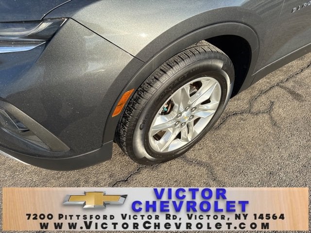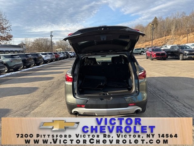 This Blazer is nicely equipped with Convenience & Driver Confidence Package (Black Roof Rails, Heated Driver & Front Passenger Seats, Inside Rear-View Auto-Dimming Mirror, Lane Change Alert w/Side Blind Zone Alert, Outside Heated Power-Adjustable Body-Color Mirrors, Rear Cross Traffic Alert, Rear Park Assist w/Audible Warning, Rear Power Programmable Liftgate, Remote Vehicle Starter System, and Universal Home Remote), Interior Protection Package (LPO) (Premium All-Weather Cargo Mat (LPO) and Premium All-Weather Floor Mats), Preferred Equipment Group 2LT (170 Amp Alternator, Heavy-Duty Cooling System, Trailer Sway Control, and Trailering Assist Guidelines), Trailering Equipment, AWD, 3.49 Final Drive Ratio, 4-Wheel Disc Brakes, 6 Speakers, 6-Speaker Audio System Feature, ABS brakes, Air Conditioning, Alloy wheels, AM/FM radio: SiriusXM, Apple CarPlay/Android Auto, Automatic temperature control, Brake assist, Bumpers: body-color, Child-Seat-Sensing Airbag, Compass, Delay-off headlights, Driver door bin, Driver vanity mirror, Dual front impact airbags, Dual front side impact airbags, Electronic Stability Control, Emergency communication system: OnStar and Chevrolet connected services capable, Four wheel independent suspension, Front anti-roll bar, Front Bucket Seats, Front Center Armrest, Front dual zone A/C, Front reading lights, Fully automatic headlights, Heated door mirrors, High-Intensity Discharge Headlights, Illuminated entry, Knee airbag, Leather Shift Knob, Low tire pressure warning, Occupant sensing airbag, Outside temperature display, Overhead airbag, Overhead console, Panic alarm, Passenger door bin, Passenger vanity mirror, Power door mirrors, Power driver seat, Power steering, Power windows, Premium Cloth Seat Trim, Radio data system, Radio: Chevrolet Infotainment 3 System, Rear anti-roll bar, Rear reading lights, Rear seat center armrest, Rear window defroster, Rear window wiper, Remote keyless entry, Ride & Handling Suspension, Security system, Speed control, Speed-sensing steering, Split folding rear seat, Spoiler, Steering wheel mounted audio controls, Tachometer, Telescoping steering wheel, Tilt steering wheel, Traction control, Trip computer, Variably intermittent wipers, Voltmeter, and Wheels: 18 Bright Silver Aluminum.