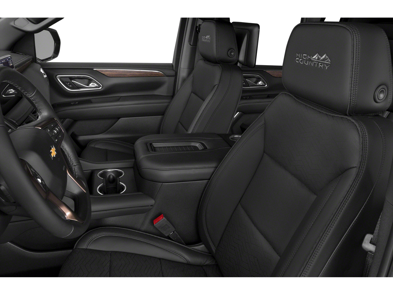 This Suburban High Country is nicely equipped with License Plate Front Mounting Package, Preferred Equipment Group 3LZ (12-Way Power Driver & Passenger Seat Adjusters, 15 Diagonal Multi-Color Head-Up Display, 1st & 2nd Row Color-Keyed Carpeted Floor Mats, 2 USB Data Ports, 2-Speed Active Electronic AutoTrac Transfer Case, 3rd Row 60/40 Power-Folding Split-Bench, Automatic Heated Steering Wheel, Bose 10-Speaker Surround w/CenterPoint, Bright Front & Rear Door Sill Plates, Chrome Door Handles w/Body-Color Strip, Color-Keyed Carpeting Floor Covering, Driver & Front Outboard Passenger Airbags, Dual Exhaust System, Enhanced Driver Information Center, Floor Console w/Storage Area, Front & Rear Park Assist, Hands-Free Rear Power Programmable Liftgate, HD Radio, HD Surround Vision, Heated & Ventilated Driver & Front Passenger Seats, Heated 2nd Row Outboard Seats, Heated Driver & Front Passenger Seats, Hill Descent Control, Infotainment Display, Inside Rearview Auto-Dimming Rear Camera Mirror, Lane Change Alert w/Side Blind Zone Alert, Lane Keep Assist w/Lane Departure Warning, Leather-Wrapped Steering Wheel, LED Daytime Running Lamps, Memory Settings, Outside Heated Power-Adjustable Mirrors, Power Release 2nd Row Bucket Seats, Power Tilt & Telescopic Steering Column, Rear Camera Mirror Washer, Rear Cross Traffic Alert, Rear Pedestrian Alert, Remote Start, Safety Alert Seat, SiriusXM Radio w/360L, and Universal Home Remote), 10 Speakers, 3.23 Rear Axle Ratio, 3rd row seats: split-bench, 4-Wheel Disc Brakes, ABS brakes, Adaptive suspension, Air Conditioning, All-Weather Cargo Mat (LPO), All-Weather Floor Mats, Alloy wheels, AM/FM radio: SiriusXM with 360L, Apple CarPlay/Android Auto, Auto High-beam Headlights, Auto-dimming door mirrors, Auto-dimming Rear-View mirror, Auto-leveling suspension, Automatic temperature control, Brake assist, Bumpers: body-color, Compass, Delay-off headlights, Driver door bin, Driver vanity mirror, Dual front impact airbags, Dual front side impact airbags, Dual-Pane Power Panoramic Sunroof, Electronic Stability Control, Emergency communication system: OnStar and Chevrolet connected services capable, Four wheel independent suspension, Front anti-roll bar, Front Bucket Seats, Front Center Armrest, Front dual zone A/C, Front reading lights, Fully automatic headlights, Garage door transmitter, Heads-Up Display, Heated door mirrors, Heated front seats, Heated rear seats, Heated steering wheel, Illuminated entry, Leather steering wheel, Low tire pressure warning, Magnetic Ride Control Suspension, Memory seat, Navigation System, Occupant sensing airbag, Outside temperature display, Overhead airbag, Overhead console, Panic alarm, Passenger door bin, Passenger vanity mirror, Perforated Leather Seating Surfaces, Power door mirrors, Power driver seat, Power Liftgate, Power passenger seat, Power steering, Power windows, Premium audio system: Chevrolet Infotainment 3 Premium, Radio: Chevrolet Infotainment 3 Premium System, Rain sensing wipers, Rear air conditioning, Rear anti-roll bar, Rear reading lights, Rear window defroster, Rear window wiper, Remote keyless entry, Roof rack: rails only, Security system, Speed control, Speed-sensing steering, Split folding rear seat, Spoiler, Steering wheel memory, Steering wheel mounted audio controls, Tachometer, Telescoping steering wheel, Tilt steering wheel, Traction control, Trip computer, Turn signal indicator mirrors, Variably intermittent wipers, Ventilated front seats, Voltmeter, Wheel Locks (Set of 4) (LPO), and Wheels: 22 x 9 Sterling Silver Premium Painted.